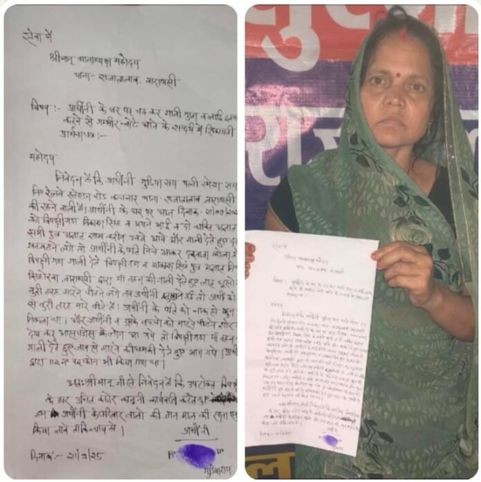 वाराणसी/-राजातालाब थाना क्षेत्र के रेलवे स्टेशन रोड कचनार थाना राजातालाब की रहने वाली गुडिया राय पत्नी रमेश राय ने राजातालाब पुलिस को तहरीर देकर व पीआरवी 112 पर फोन करके सोमवार देर शाम सात बजे के लगभग आरोप लगाया था कि पीड़िता के घर पर विपक्षी गण विकाश सिंह व अपने भाई व दो व्यक्ति अज्ञात सभी पुत्र अज्ञात आये और गाली देते हुए दरवाजा खटखटाने लगे तो पीड़िता के पति निचे आकर दरवाजा खोला तो विपक्षीगण गाली देते हुए विपक्षीगण व आकाश सिंह पुत्र अज्ञात निवासी सिहोरवा वाराणसी द्वारा माँ बहन की गाली देते हुए लात घूंसो से बुरी तरह मारने पीटने लगे तब पीड़िता बचाने आई तो पीड़िता को लाठी डंडों से बुरी तरह मारे पीटे हैं।पीड़िता के पति को नाक से खून भी निकला था और पीड़िता व उसके बच्चों को मारने पीटने शोर गुल देख कर आस पडोस के लोग आ गये तो विपक्षीगण माँ बहन की गाली देते हुए जान से मारने की धमकी देते हुए भाग गये।पीड़िता द्वारा घटना की सूचना 112 पर फोन कर दी गयी बावजूद पीड़िता के प्रार्थना पत्र पर राजातालाब पुलिस द्वारा कोई कार्यवाही नहीं की गई उल्टा विपक्षियों के प्रार्थना पत्र पर नन्हकू शर्मा,सूरज राय धनिश के खिलाफ मुकदमा दर्ज कर लिया गया जो चर्चा का विषय बना रहा।वही इस बाबत चौकी प्रभारी कस्बा राजातालाब रोहित दूबे व थानाध्यक्ष राजातालाब राजू कुमार का कहना रहा कि एसीपी सर के आदेश के बाद मुकदमा दर्ज किया जायेगा लेकिन वास्तविक पीड़िता के तहरीर पर कोई मुकदमा राजातालाब पुलिस ने नहीं दर्ज किया उल्टा राजातालाब से लगभग 8 किलोमीटर दूर से आए हुए विपक्षियों के प्रार्थना पत्र पर राजातालाब पुलिस ने गंभीरता तथा सक्रियता दिखाते हुए मुकदमा दर्ज कर एक कौतहुल का विषय बना दिया है। पीड़िता ने उत्तर प्रदेश के मुख्यमंत्री योगी आदित्यनाथ डीजीपी लखनऊ उत्तर प्रदेश पुलिस आयुक्त वाराणसी मोहित अग्रवाल पुलिस उपायुक्त गोमती जोन आकाश पटेल अपर पुलिस उपायुक्त गोमती जोन बैभव बांगर सहायक पुलिस आयुक्त राजातालाब अजय कुमार श्रीवास्तव थाना अध्यक्ष राजातालाब राजू कुमार का ध्यान आकृष्ट कराते हुए कार्यवाही की मांग किया है।*