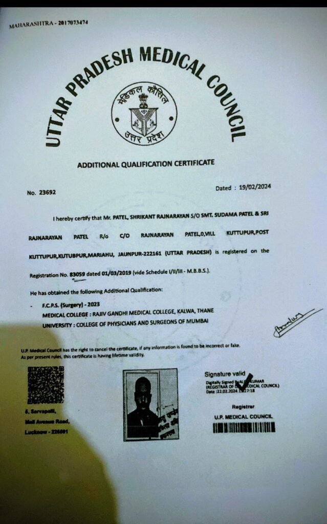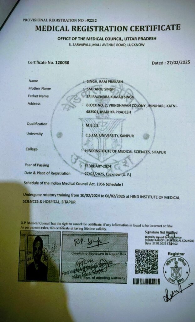 जांच के दौरान यह बात सामने आई कि अस्पताल में कार्यरत कथित डॉक्टरों की डिग्रियां और लाइसेंस संदिग्ध हैं।सोशल मीडिया पर बुधवार को एक फोटो वायरल हुआ था,जिसमें एक व्यक्ति ऑपरेशन करते हुए दिखाई दिया।सूत्रों के अनुसार यह व्यक्ति कोई पंजीकृत सर्जन नहीं बल्कि डॉ उदय वर्मा हैं जो पहले राजातालाब स्थित एक निजी चिकित्सालय में कम्पाउंडर के रूप में कार्यरत थे।वहीं से उन्होंने कुछ चिकित्सा संबंधी जानकारी हासिल की और बाद में अपना स्वयं का क्लिनिक खोलकर मरीजों का इलाज व ऑपरेशन शुरू कर दिया।