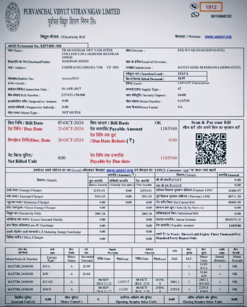 वाराणसी/-विद्युत वितरण खंड द्वितीय बरईपुर में नियमों को ताक पर रखकर बिजली बिल रिवाइज किए जाने का मामला प्रकाश में आया है।अभियंताओं ने खर्च यूनिटों में ही हेरफेर कर लाखो रुपयों के बिल को हजारों में तब्दील कर दिया है।प्राप्त जानकारी के अनुसार एमआरआई और ओके बेस्ड बिजली बिल में खेल किया गया।अभियंताओं और डिवीजन लेखाकार और लिपिको की मिलीभगत से पूर्वांचल डिस्काम को लाखों का चूना लगाने का आरोप लग रहा है।वहीं सूत्रों ने बताया कि पीडी (स्थाई विद्युत विच्छेदन) के नाम पर भी फर्जीवाड़ा किया जा रहा है।लाखो के बिल की गलत तरीके से पीडी भी कर दी गयी।सूत्रों ने बताया कि शहर और ग्रामीण के सभी सब डिवीजन और डिवीजन कार्यालय में पीडी के नाम पर बड़ी हेराफेरी की जा रही है।आपको बता दे कि मंगलवार को पूर्वांचल विधुत वितरण खण्ड द्वितीय बरईपुर चितईपुर वाराणसी के एमडी को बीते मंगलवार को नेशनल मीडिया हेल्पलाइन के राष्ट्रीय अध्यक्ष एस के श्रीवास्तव विकास व राष्ट्रीय पत्रकार परिषद के राष्ट्रीय अध्यक्ष उपेंद्र उपाध्याय ने साक्ष्य प्रमाण के साथ ज्ञापन सौंपकर जांचोपरांत कार्यवाही की माँग किया था,एमडी को दिए हुए मांग पत्र में बताया गया था कि विद्युत वितरण खण्ड द्वितीय बरईपुर चितईपुर वाराणसी में अधिशासी अभियन्ता मनीष झाँ पिछले डेढ साल से तैनात है।कई बिल को रिवाईज कर राजस्व को बहुत बड़ी हानि का मामला संज्ञान में आया है ज्ञात हो कि बदामा देवी पत्नी दीनानाथ सिंह ग्राम भीषमपुर, सेवापुरी का मामला एसी नम्बर-4913569000 का बकाया बिल था मु0 4,66470/-रू० दिनांक 19 जून 2025 को बकाया बिल और दिनांक 23 जून 2025 को घटाकर 119852/-रू0 कर दिया गया इतना ही नही शनिवार को लोहता थाना क्षेत्र के छितौनी कोटवा स्थित देववाणी इंटर कालेज का 24 केवीए स्वीकृति लाइन का बिल अक्टूबर माह में 1183540 का बनाया गया था जिसे अक्टूबर में ही 271472 का बना दिया गया। ऐसे ही कितना बिल का रिवाईज कर अधिशासी अभियन्ता ने अपना तो जेब भरा लेकिन राजस्व का बहुत बड़ा घाटा किया,शहजाद अन्सारी पुत्र युनीस अनसारी एसी-6585309000 का बकाया बिल दिनांक 12 अगस्त 2025 में था रू0 1,18783/-रू0 जिसको घटाकर दिया गया रू0 39756/-रू0 राम नरेश ग्राम राय जलालपुर का बकाया बिल था एसी नं0 4503861100 जिसका बकाया रू० 2,40826/-रू० था।उसे घटाकर रू0 66707/-रू0 कर दिया गया राधिका देवी पत्नी हीरा सिंह ग्राम चक नरोत्तमपुर एसी नं0-3030978000 का बकाया बिल 50 87855/-रू जिसे घटाकर रू0 19712 कर दिया गया, अलका तिवारी एसी नं0 7100191100 बकाया रू0 3,44134 था ग्राम गंगापुर पटेल नगर जिसे घटकर शून्य कर दिया गया।वही इस बाबत पूर्वांचल विधुत वितरण निगम लिमिटेड वाराणसी के प्रबंध निदेशक शम्भु कुमार का कहना रहा कि गलत तरीके से बिजली बिल रिवाइज कराने की शिकायत पूर्व में व वर्तमान में पत्रकार संगठन द्वारा म
