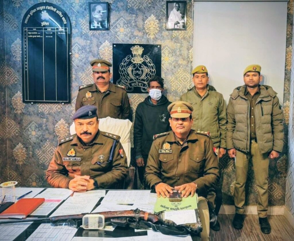 वाराणसी/-ऑपरेशन चक्रव्यूह के तहत मुखबिर की सूचना पर बीते पाँच दिनों पूर्व चोरी के दर्ज मुकदमे का सफल अनावरण करते हुए आरोपी शिव कुमार पटेल पुत्र स्व राम फकीर पटेल निवासी ग्राम नरउर थाना रोहनिया जिला वाराणसी को बाड़ासुर मन्दिर गेट के पास से शनिवार को गिरफ्तार करते हुए उसके निशांदेही पर चोरी की एक रायफल व तीन जिन्दा कारतूस बरामद किया गया उक्त गिरफ्तारी व बरामदगी के आधार पर थाना रोहनिया पुलिस द्वारा अग्रिम विधिक कार्यवाही करते हुए जेल भेज दिया गया।आपको बता दे कि 14 दिसम्बर 2025 को पीड़ित अखिलेश कुमार वर्मा द्वारा थाना रोहनिया पर सूचना दिया गया कि 13 दिसम्बर 2025 को प्रार्थना पत्र दिया गया कि ग्राम जगतपुर स्थित मेरे किराये के मकान से लाईसेन्सी रायफल व बैग एटीएम आधार कार्ड पैन कार्ड चेक बुक व 5000 नकद व जरूरी दस्तावेज व समरसिबल स्टार्टर मिक्सी मशीन तार सहित अज्ञात द्वार चोरी कर लिया गया है।पूछताछ करने पर पकड़े गए आरोपी ने बताया कि मैं नशे का आदी हूं जब मेरे पास नशा करने के लिये पैसा नही रहता है तो मैं छोटी-मोटी चोरी कर लेता हूं।बीते 13 दिसम्बर 2025 को शाम 6 बजे के करीब मैं जगतपुर रेलवे पटरी के किनारे से पीछे से जाकर दीवार के सहारे एक मकान पर चढ़कर छत की सीढ़ी से नीचे उतरकर कमरे से एक बन्दूक व स्टार्टर व एक बैग चोरी किया था भागते समय मैने रेलवे पटरी के किनारे झाड़ियों में बैग व स्टार्टर फेक दिया था तथा बन्दूक को अपने साथ ले जाकर एक प्लास्टिक बोरी से लपेटकर घर में ही जमीन में गाड़ दिया था पुलिस मेरे घर मुझे तलाशते हुए बार बार आ रही थी तो मैने राइफल को रेलवे क्रासिंग के पहले झाड़ियों में छिपा कर रख दिया था।बैग व स्टार्टर कहां फेंका था मुझे याद नही है।पुलिस टीम द्वारा पकड़े गए आरोपी के निशांदेही पर 315 बोर की राइफल तथा 3 जिन्दा कारतूस बट कवर में रखा बरामद किया गया।गिरफ्तार आरोपी के खिलाफ थाना मंडुवाडीह में दो व थाना रोहनिया में भी दो मुकदमा दर्ज है।गिरफ्तारी व बरामदगी करने वाले पुलिस टीम में मुख्य रूप से प्रभारी निरीक्षक रोहनिया राजू सिंह,उप निरीक्षक चौकी प्रभारी मोहनसराय अमीर बहादुर सिंह,उप निरीक्षक प्रमोद कुमार गुप्ता,कांस्टेबल रामाश्रय यादव,हेड कांस्टेबल सुधीर कुमार सिंह,कांस्टेबल शीत कुमार वर्मा शामिल रहे।